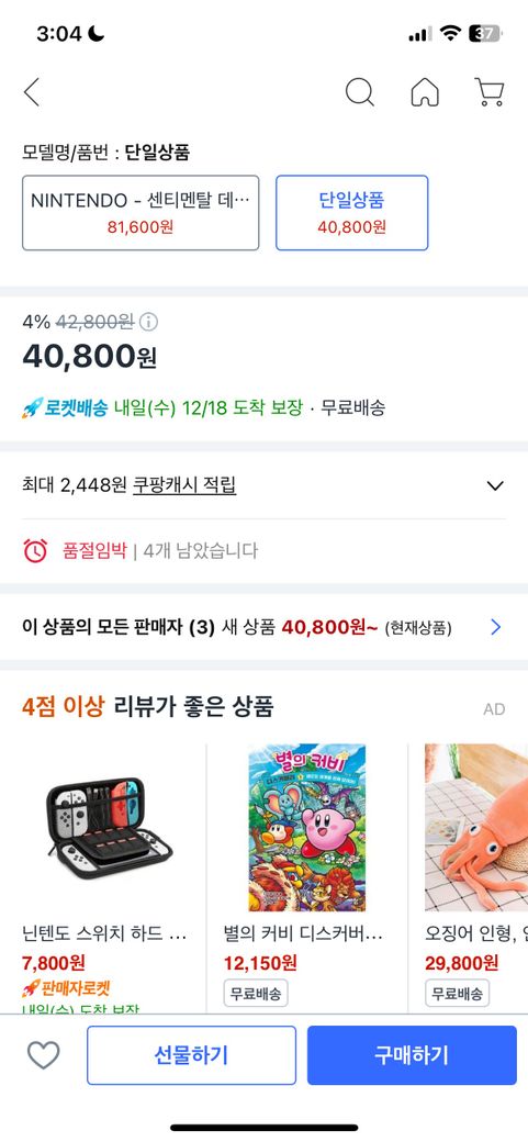 말그대로 해당 상품의 재고가 얼마 남지 않아(4개라고 기재되어 있네요)
