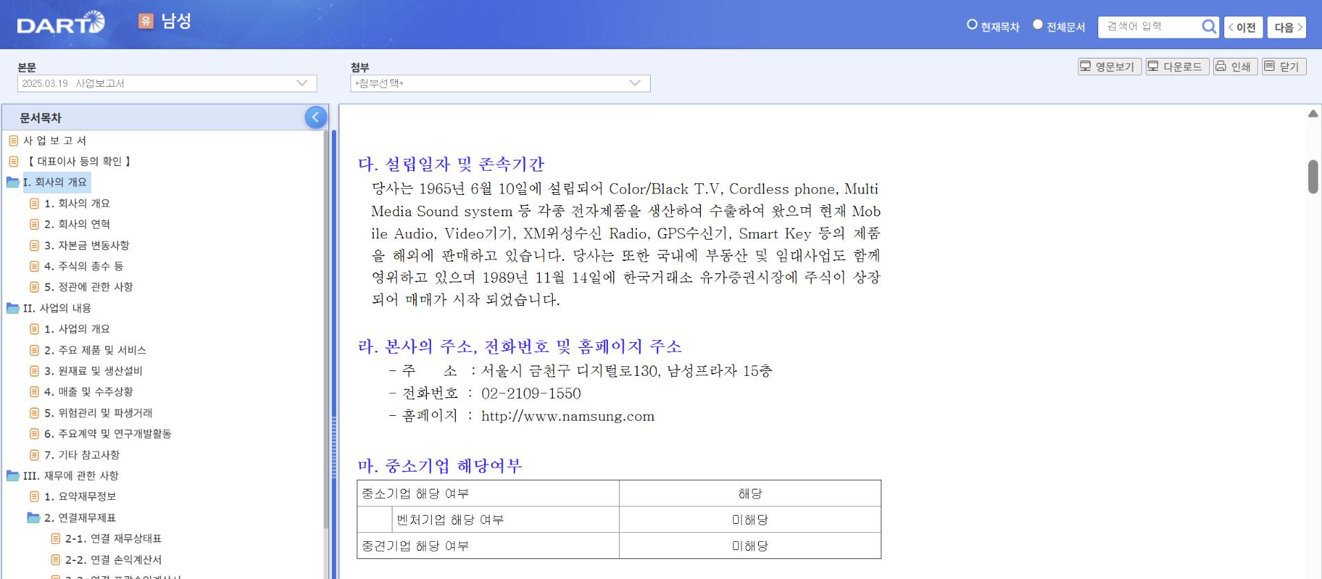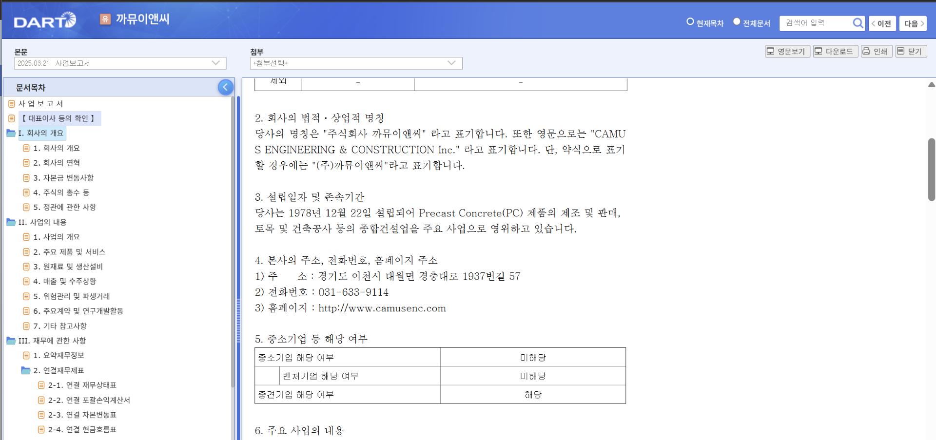 남성, 까뮤이앤씨는 DART 공시에 보시면 중소기업 해당 여부가 아니라고 나옵니다.