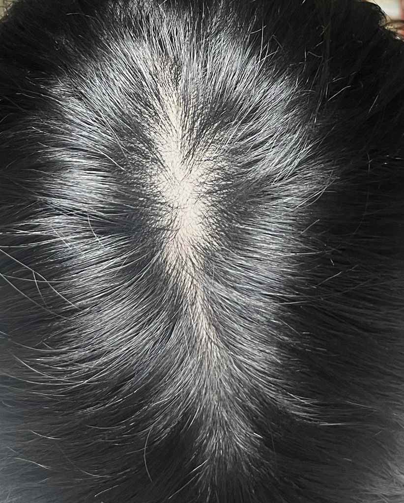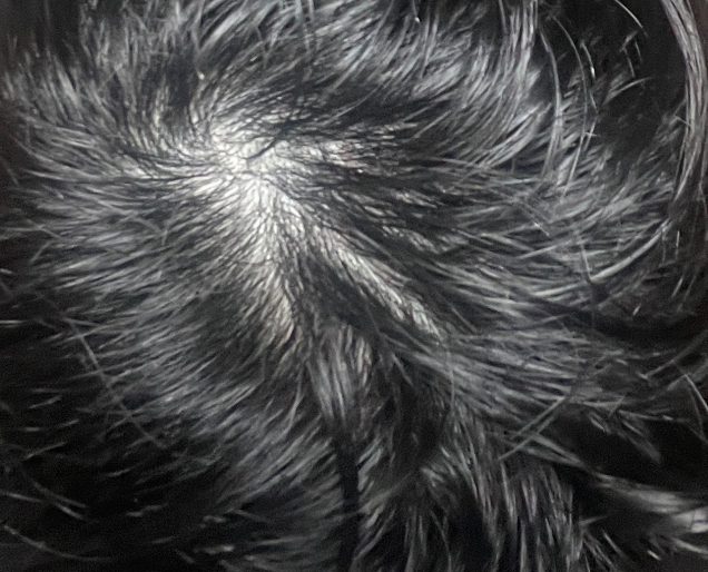 정수리 사진을 한 두 장 가지고 탈모증 여부를 구체적으로 감별을 할 수는 없습니다만 올리신 정수리 사진을 통해서 보았을 때에는 탈모증이 강력하게 의심되거나 하는 소견이 있어 보이지 않습니다.