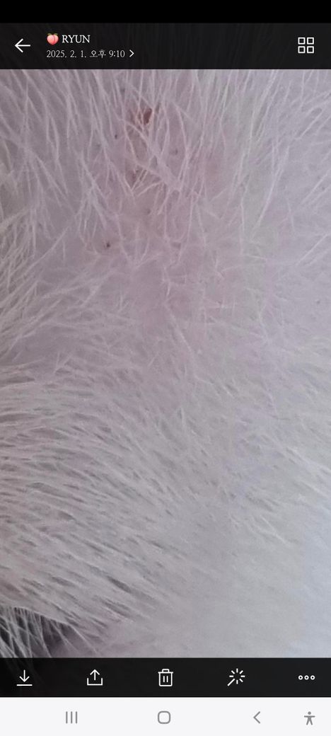 보통 턱에 생기면 턱드름이라고 부르는 코메도로 보입니다. https://diamed.tistory.com/985 다양한 원인이 있으니 만약 범위가 넓어지고 양이 증가하면 동물병원에 데려가서 진료 받으시기 바랍니다.