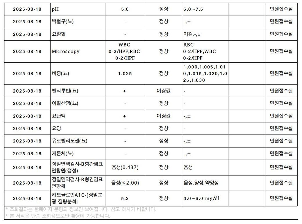 보건소 임상병리검사를 받았는데, 당장 내원하여 정밀검사를 받아봐야 되는 부분이 있을까요?