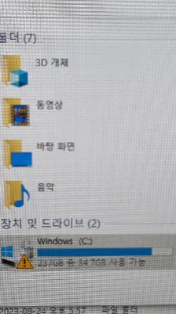 어느순간 컴퓨터 c드라이브를 열어봤더니 첨부사진처럼 경고문구가 떴는데요.