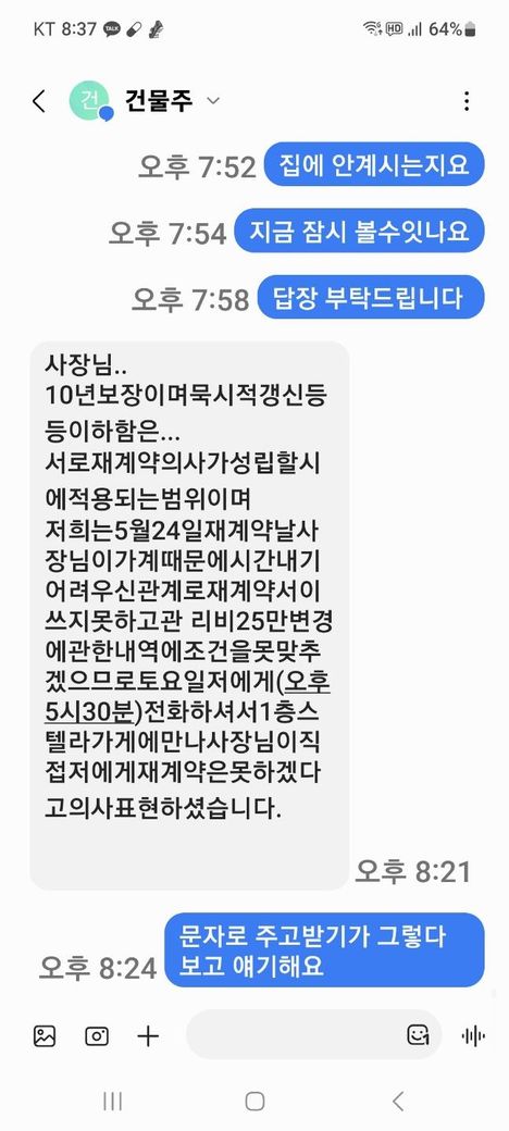 저희는 재계약못하겠다가 아니고 올린관리금으로 변경이 재계약하기어려우니 그전관리금으로 청구할시 계약가능할거같다고 말씀드리고 관리금이 올랐다는사실도 재계약하자고 대화나눈날짜가 자동연장이 된후에 알게되어서 고지를 이렇게받으면 저희는 준비할시간이없는데 이게맞는건가요?