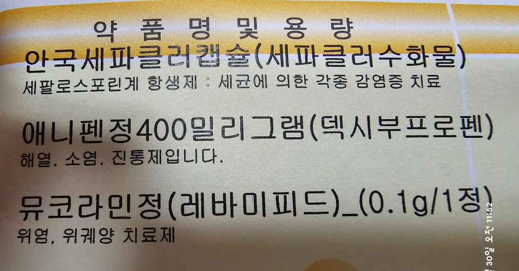 아래 사진의 처방약은 위장장애를 줄이기위해 식후즉시 복용하셔야합니다.