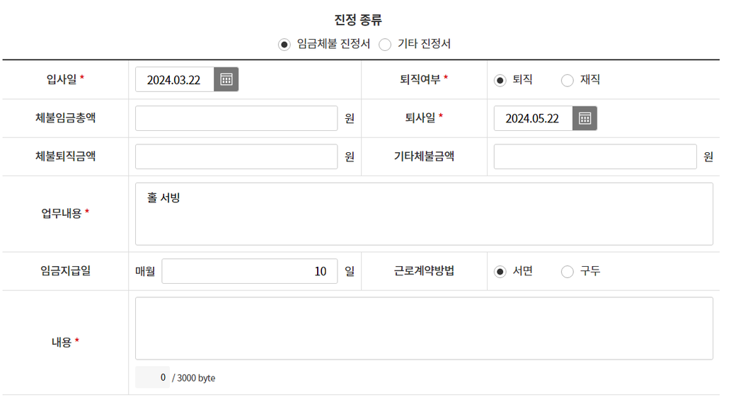 퇴사후 2주가 지났는데 아직도 입금이 안된 임금. 임금체불로 신고하려고하는데요, 체불임금 총액 어떻게 넣어야 할까요?
