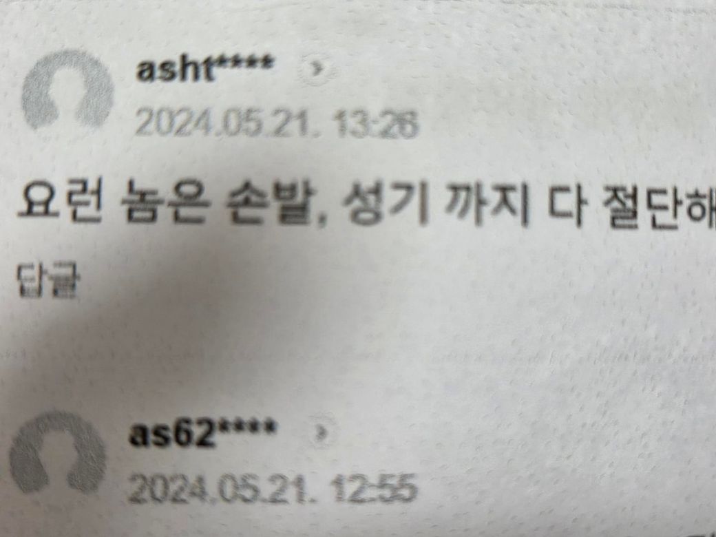 '성기 절단' 등 표현이 매우 저급합니다. 이것이 저에 대한 사회적 평가를 저하시키는 '모욕'에 명확히 해당하는지 아니면 단순한 과격한 의견 표명으로 불송치될 여지가 있는지 판단이 서지 않아 일단 보류하였습니다.