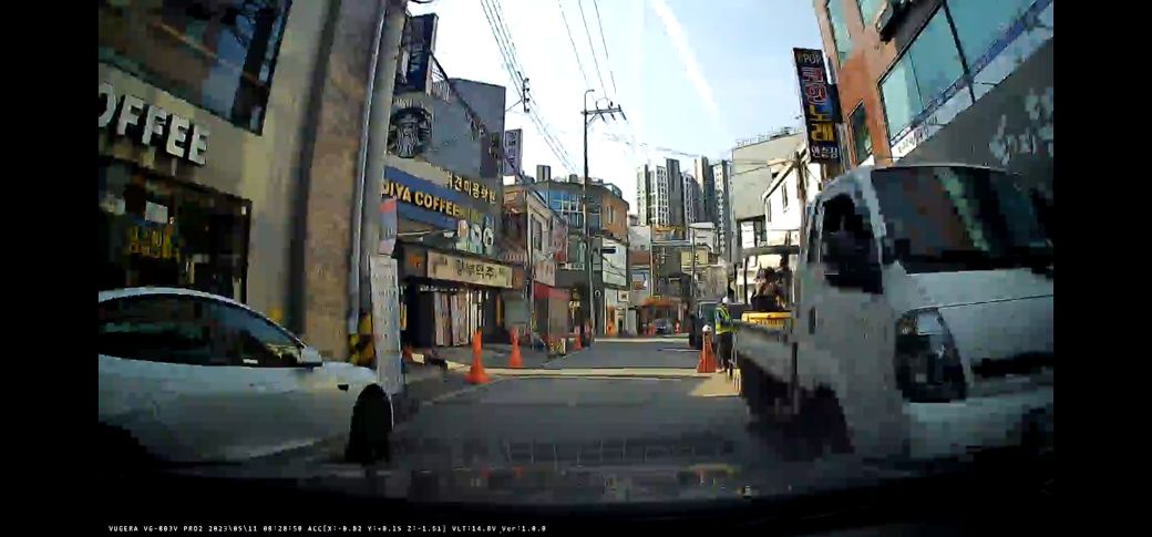 흰트럭에 진입하기전 사람은 보이지않습니다
