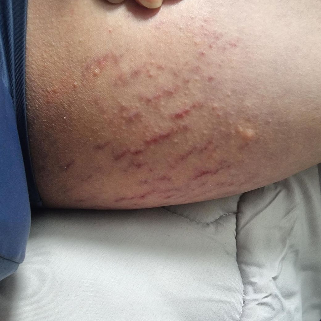 튼살이 생긴 겁니다. 최근에 체중이 급격하게 증가한 것이 아닐까 싶네요. 갑자기 체중이 늘어나면서 피부도 같이 늘어나게 되어 생기는 것이 튼살인데 아직 빨간 색을 띄는 것으로 보아 아직 생긴지 얼마 지나지 않은 것 같습니다. 시간이 지나면 점차 흰색으로 변하기 때문이지요. 일단은 튼살 크림 먼저 바르면서 장기적으로는 체중 조절을 해야 더 심해지지 않을 겁니다.