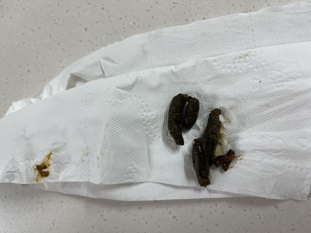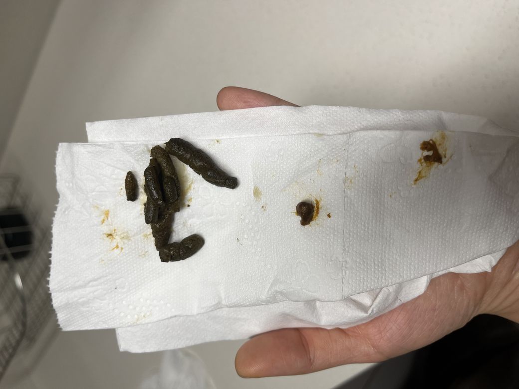 그런 경우라면 밥은 커녕 물도 안먹고 죽기 일보 직전이고 변은 저런 모양을 갖춘 상태가 아닌 완전 물설사 죽죽합니다.