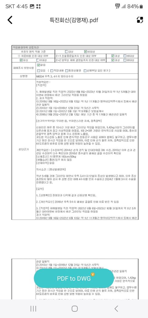 퇴사 후 신경손상,듀피트렌구축,방아쇠수지진단등으로