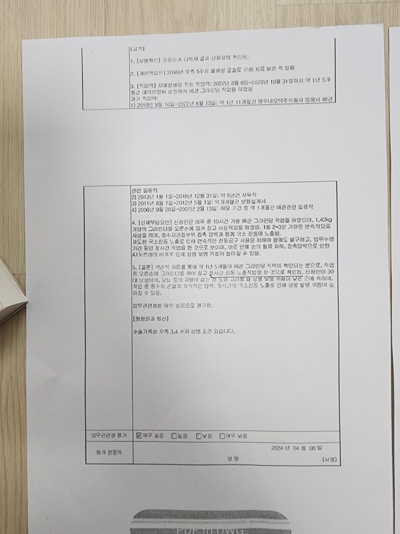 노무사님께 업무상질병 관련문의드립니다.