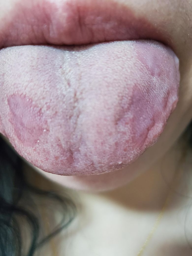 혐오스럽겠지만 사진처럼 혓바닥 부분 부분이 돌기가 없이 평평하게 보이는데 괜찮은건가요?어느날 갑자기 혀 느낌이 이상해서 보니 처음엔 한군데였는데 지금은 세군데나 저 상태입니다ㅠㅠ