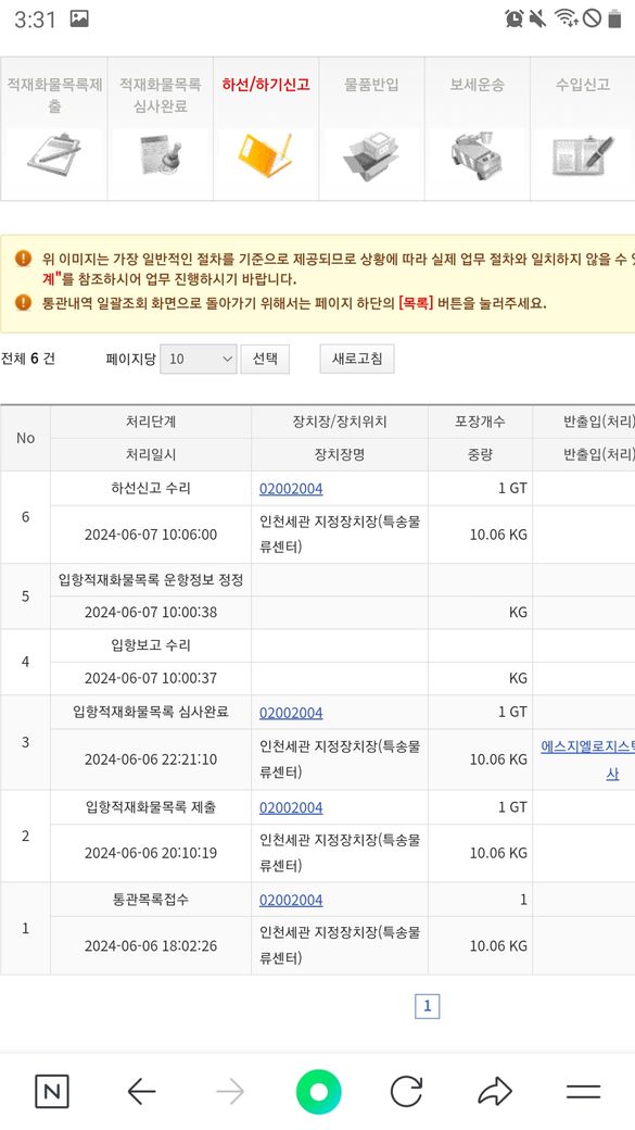 통관 회사에서 픽업 완료 후 그 다음으로 넘어가질 않습니다