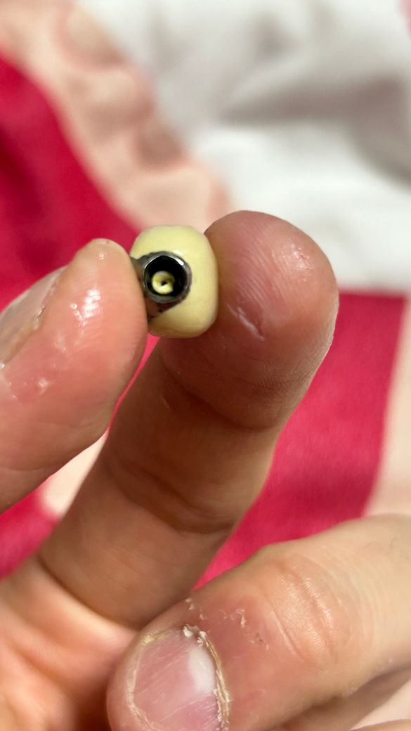 사진으로 봤을 경우에는 상부 보철물만 빠진것으로 보입니다. 이런경우 보철물을 간단하게 부착할수도 있습니다.