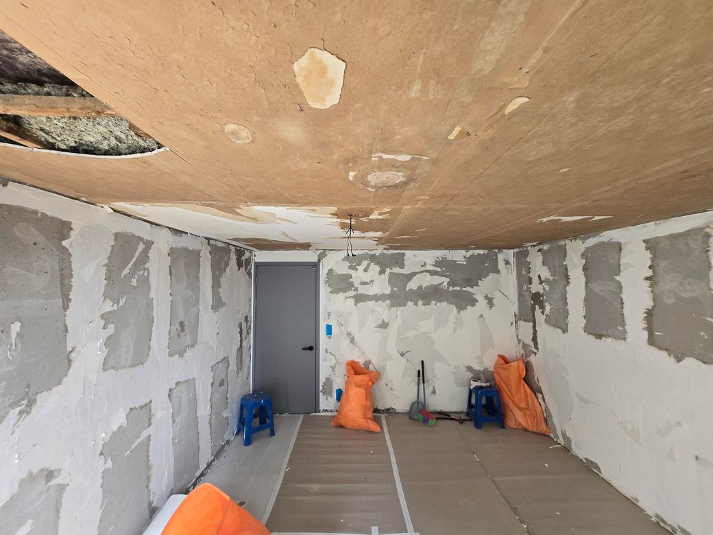 아파트 꼭대기충에 살고 있으며, 이번에 안방 천장이 무너져 대대적인 공사를 하고 있습니다.