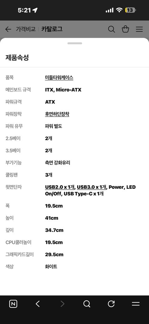 케이스는 미들타워 제품으로 메인보드m-atx크기까지 들어갈 것 같아요
