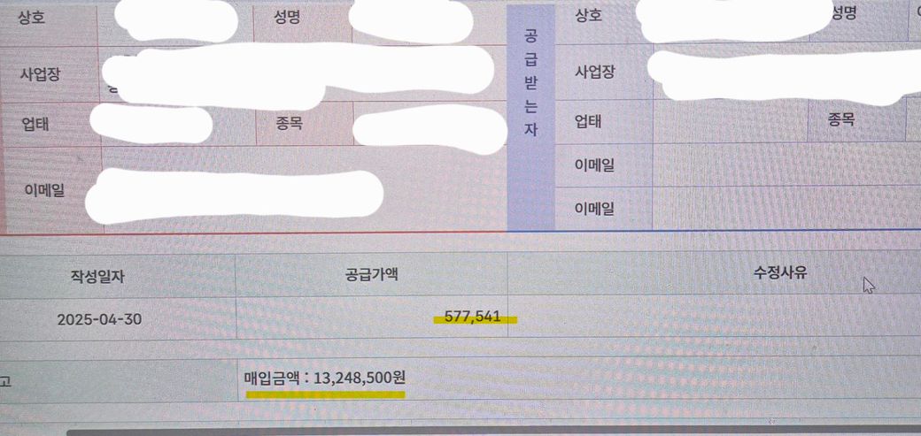 안녕하세요, 주민번호로 발급받은 전자계산서인데요