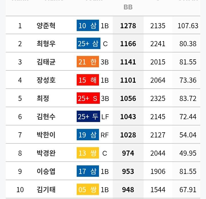 야구를 하다보면 안타뿐만 아니라 볼넷, 선구안이 정말 중요하다고 느껴지는데요. 그렇다면 KBO 누적 최다 볼넷 선수는 누구인가요? 감사합니다.