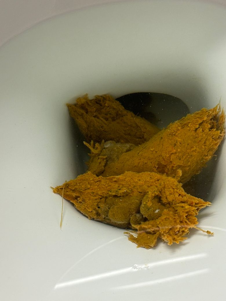 제 변 정상인가여?? 반은 노랗고 반은 갈라진?? 카키?? 이상한형태인데 왜 그런건가요?? 하얀건 뭔가여 점액질인가요? 원래 나오나여??