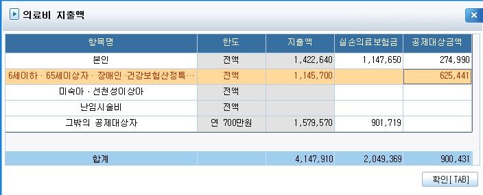 지출액은 1,145,700이고 공제대상금액은 625,441