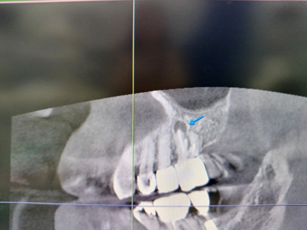 신경치료 후 크라운 장착한 치아뿌리 염증상태 입니다 잠잘때는 통증이 거의 없는데 일어나서 일상 중 통증이 있으며 말을할때 더 아픕니다 염증이 크기가 저정도면 큰편인지 저정도면 발치해야 되는지