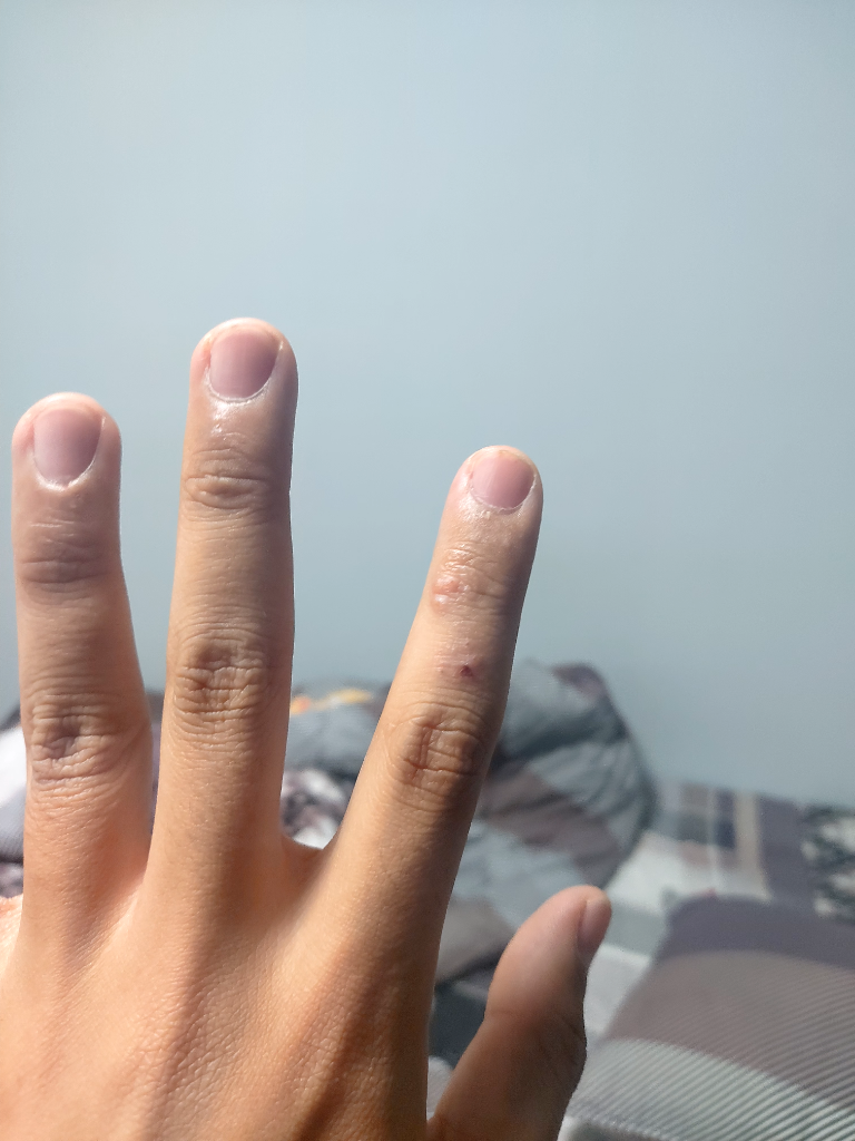 현재 물집이 간지럽고 옆으로 퍼지는경우 바이러스성 질환이나 한포진을 의심해볼수 있으며 보다 정확한 원인을 확인을 위해 우선 피부과에 방문하여 진료를 받길 권장드립니다.