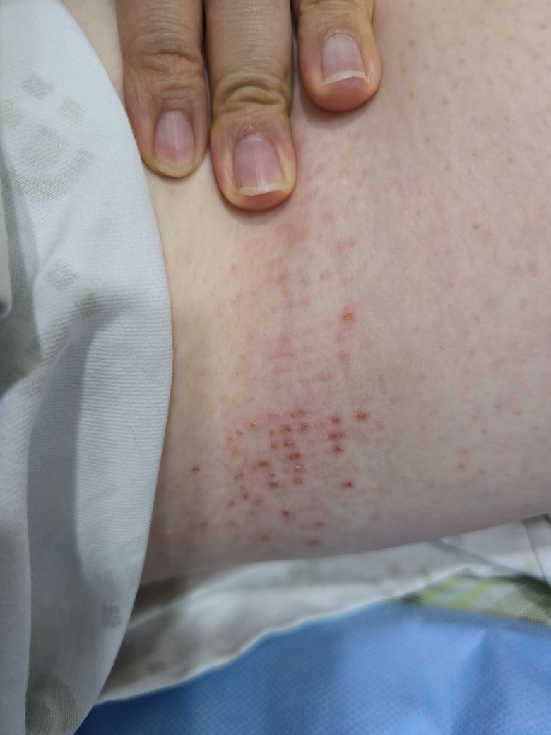 이틀전 생긴건데 허벅지에 이게 땀띠일까요?
