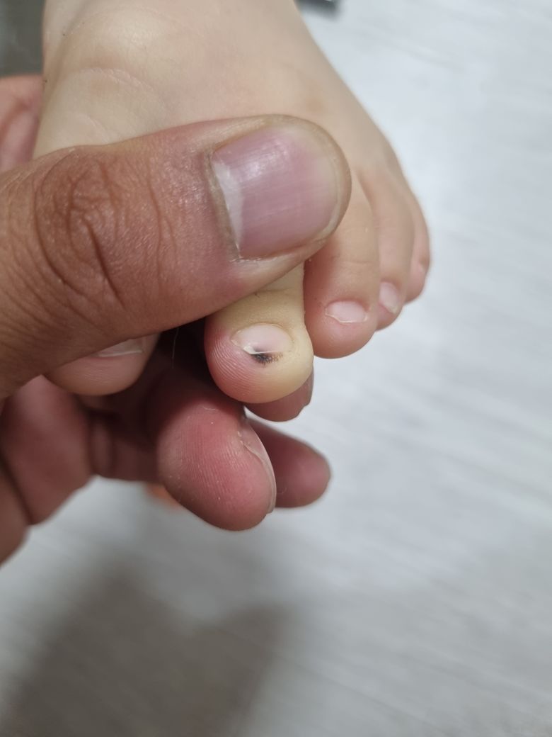 5살아이 발톱부분에 점 사진인대요 흑색종 이런 큰병일까 걱정이 됩니다.