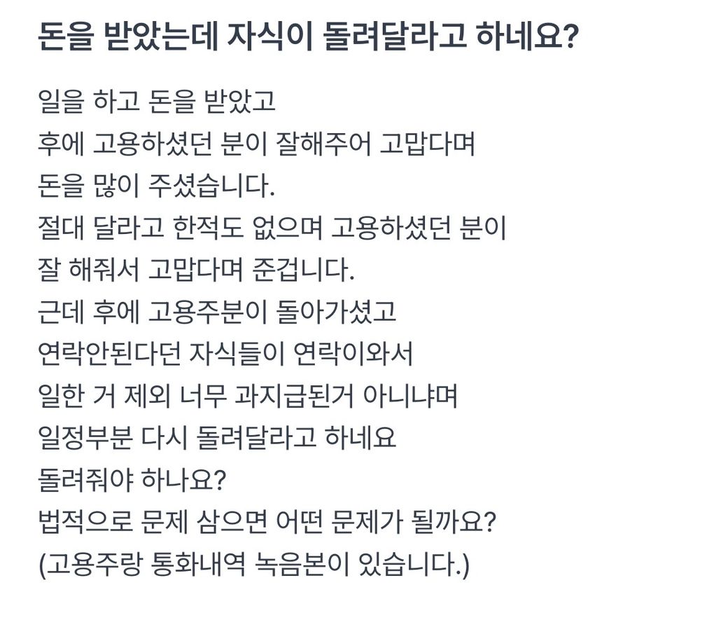 이런 구두계약에 대해 상대측에서 통화 녹음본을 요구 했습니다.그래서 저희는 문제가 있다고 생각이 된다면 법적으로 하시고 그때가서 저희가 가지고 있는 것들로 소명하겠다 했는데,녹음본을 보내주는게 맞을까요?