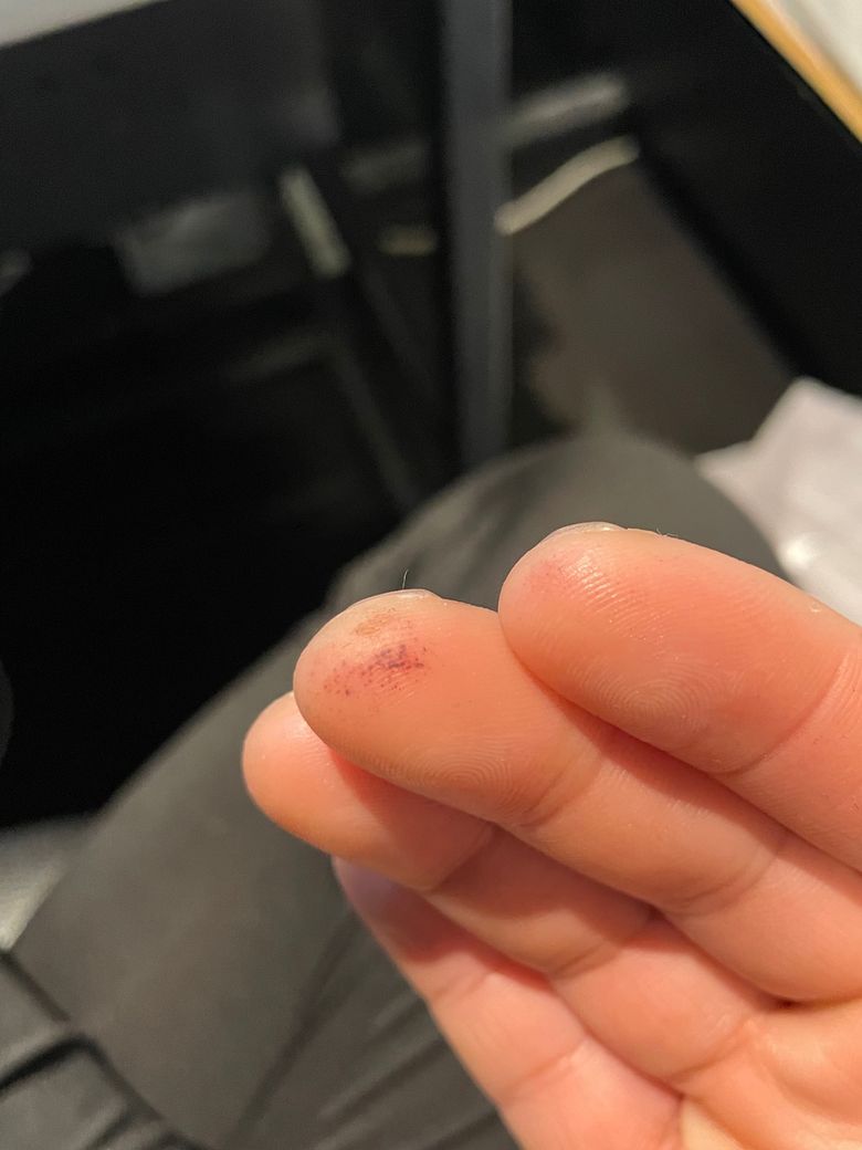 오히려 마찰에 의해서 피부 아래에 점상출혈이 생긴 상태로 보입니다.