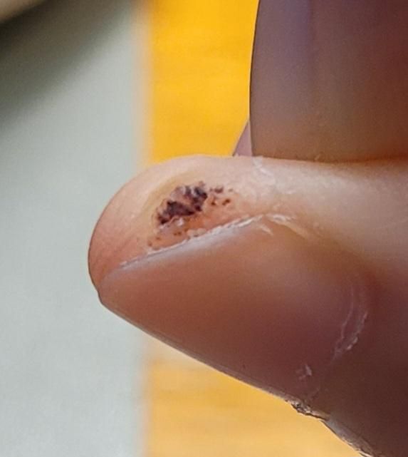 1번 사진은 왼손 엄지, 2번 사진은 오른손 검지입니다. 이 두 부분은 흰색이 선명한 보통사마귀였는데 냉동 1회차 받고 크기는 줄어도 완전히 사라지진 않았습니다. 왼손 엄지는 의사가 남았대서 한번 더 했는데 딱지 떼어도 똑같아서 오늘 3회차까지 받았구요. 오른손 검지는 경과 보자고 했는데 흰색이 선명하게 계속 남아서 오늘 2회차했습니다.