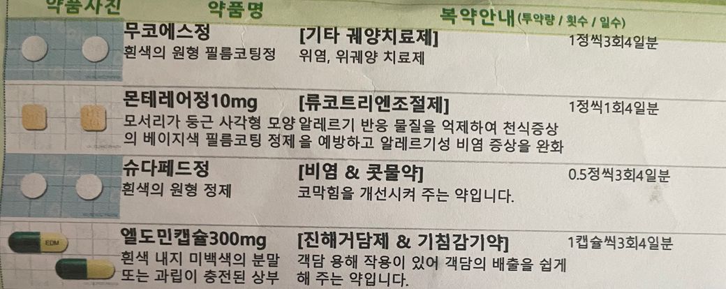 사진으로 보여주신 4가지 비염약과 2가지 식도염약은 같이 드실 수 있습니다