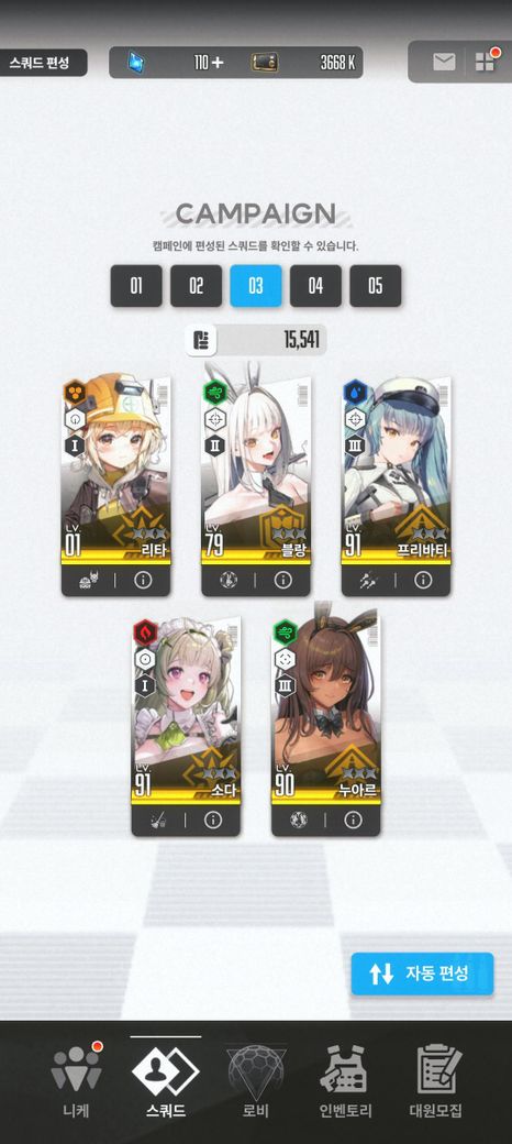 지금 현재 제 스쿼드 상태인데 리타도 오늘 뽑은거에요 나가랑 앨리스 둘중에 누굴 뽑아야 할까요?