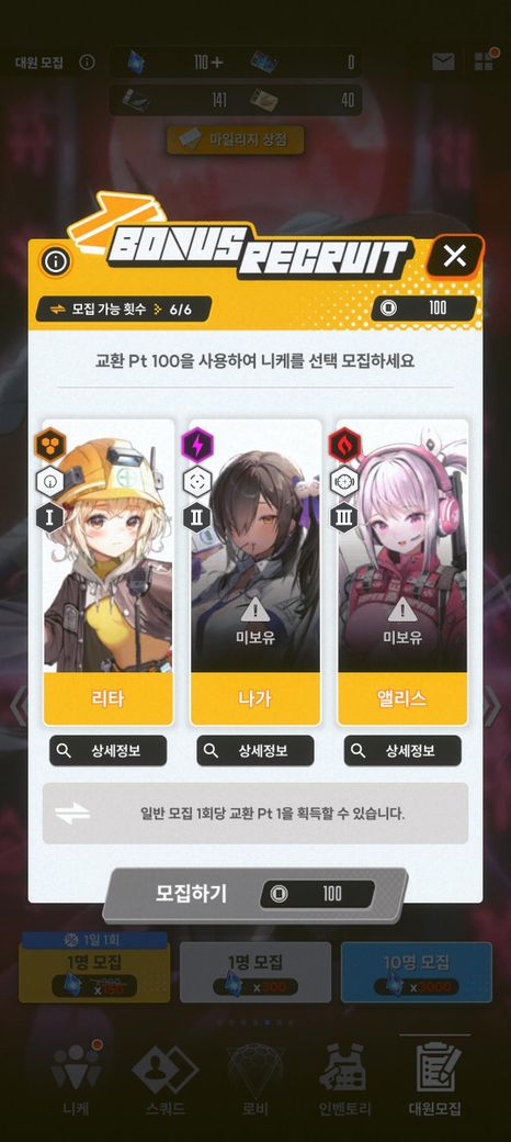 pt100을 다 모아서 나가랑 앨리스 둘중에 하나 확정으로 얻을 수 있어요