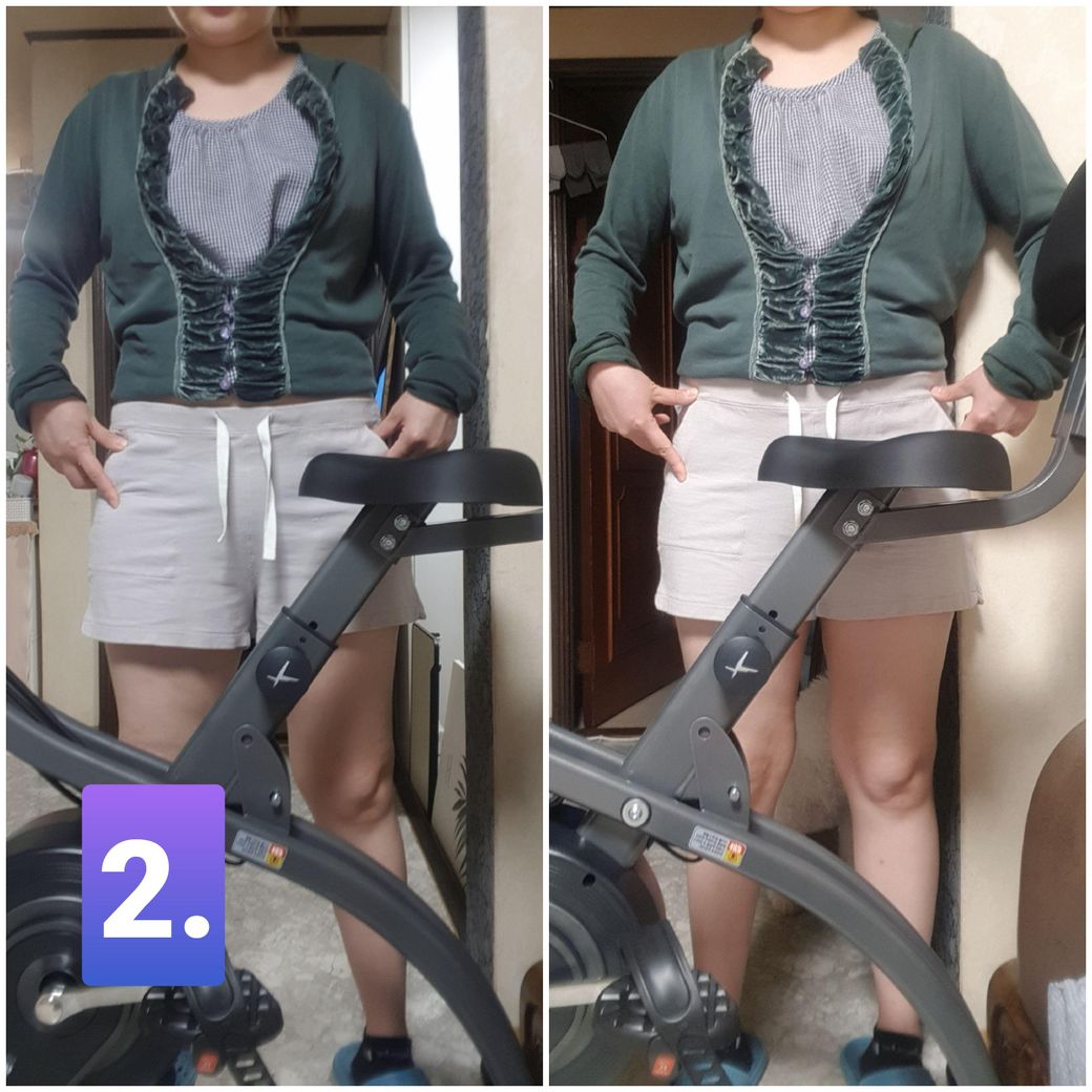 종합적으로 볼 때, 1번 사진의 높이는 무릎과 허벅지에 불편함을 유발하는 무릎 굽힘 과도, 허벅지 걸림 등울 보여주므로 안장이 확실히 너무 낮은 상태라고 판단됩니다. 반면 2번 사진의 높이는 다리가 완전히 펴지는 느낌이 들더라도, 1번 사진에서 나타나는 명백한 문제점들보다는 덜 해롭거나 이상적인 높이에 더 가까울 가능성이 있습니다. 안장이 너무 낮은 것보다는 약간 높은 것이 장기적인 관절 건강에 덜 부담을 줄 때가 많습니다.