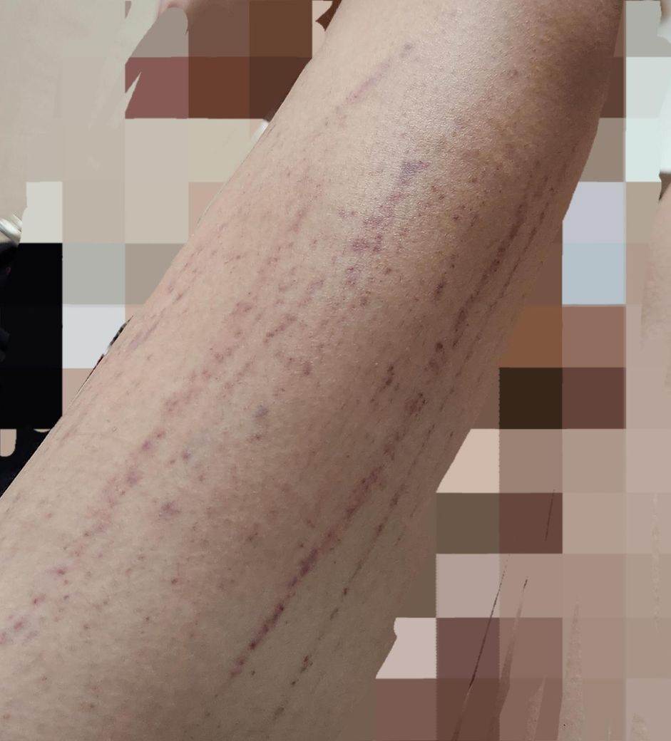 날붙이로 하는 것 말고 손톱으로 살을 긁기도 해서 피멍이 들어요 (사진 참고)