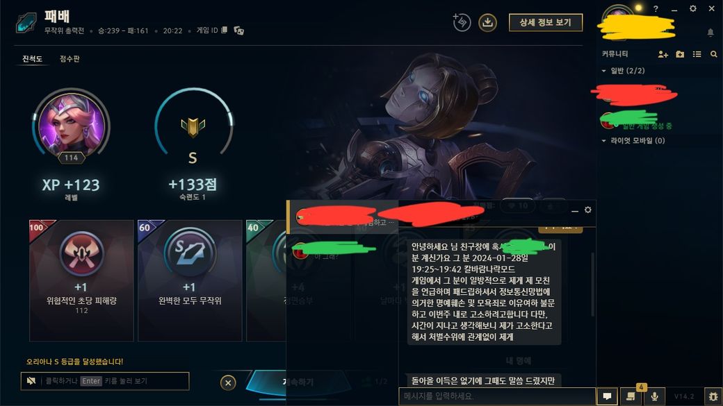 친구와 디스코드를 킨 상태로 게임하고 있는데 빨간색이 친구에게 친추를 걸고 일대일 채팅으로 저런 내용을 보냈습니다. 친구는 저에게 바로 보내줬고 저 내용을 친구의 여자친구도 친구 옆에서 봤습니다.