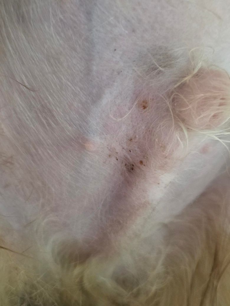 3개월 된 강아지입니다. 풀밭이랑 바닥에 좀 엎드랴 있었는데 혹시 진드기 물린 자국이거나, 혹은 습진일까요..?? 혹은 원인 아시면 부탁드립니다 ㅠㅠㅠ