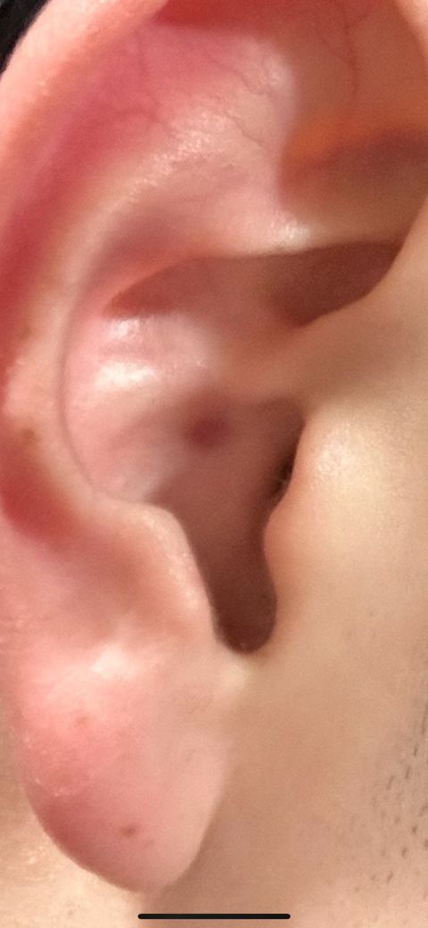 1달전즈음 귀에 병변이 발생하였고, 아직 없어지지 않음