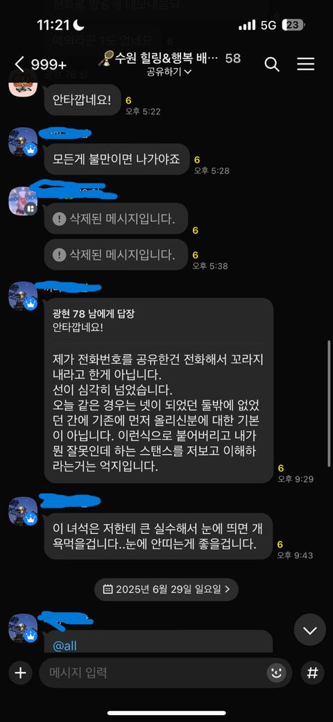 다름이 아니고 카카오톡 오픈채팅방에서 알게된 운동모임을 다니다가본인이 요구한대로 행동하지 않자 화를 내고 전화를 끊은 뒤에오픈채팅방에서 내보내고 저는 망상환자가 아닌데 망상이 심각하다며망상환자로 만드시고 나중에 눈에 띄면 심하게 욕을 할거라고 협박이라고 해야하나여 위협이라고 해야할까여? 괜히 마주칠까봐 긴장하게끔 하는 내용으로 사람들을 선동한다고연락을 받았는데 이런 부분도 모욕죄나 다른 법적인 책임을 물을 수있는걸까요?..