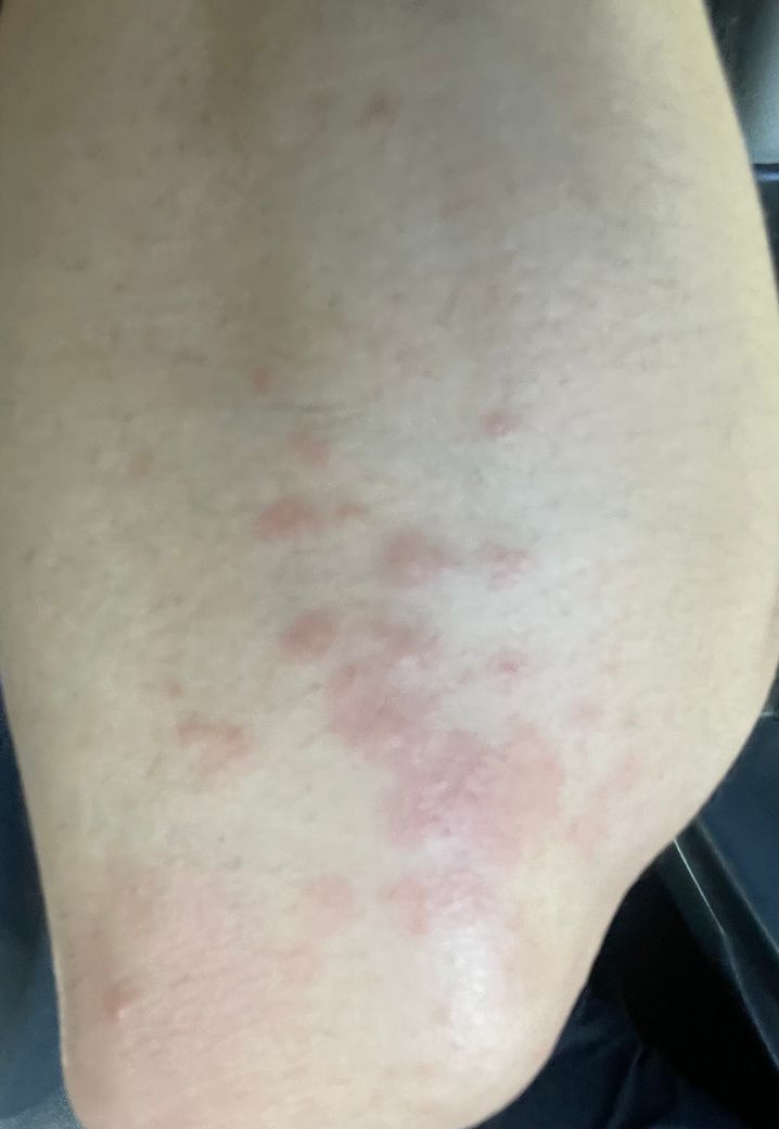 한 4일은 해수욕장에서 대낮에 수영하고 놀았는데요 살이 탄 것도 탄 건데 팔꿈치 양쪽 모두 이런 두드러기?가 생겼는데요 병원에 내원 해봐야 할까요?