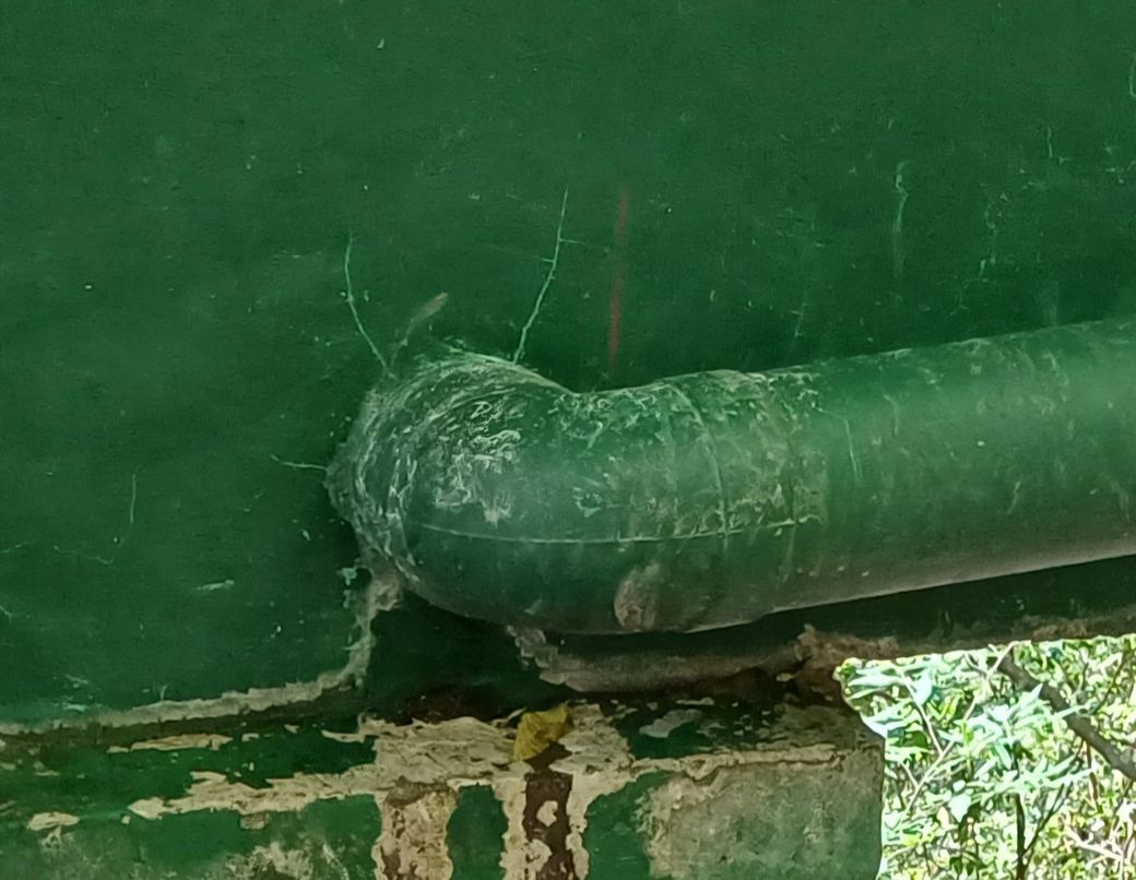 변기 밑에서 물방울이 떨어지는 소리가 들리고건물 외벽 배수관 밑으로 물이 흘러나오고