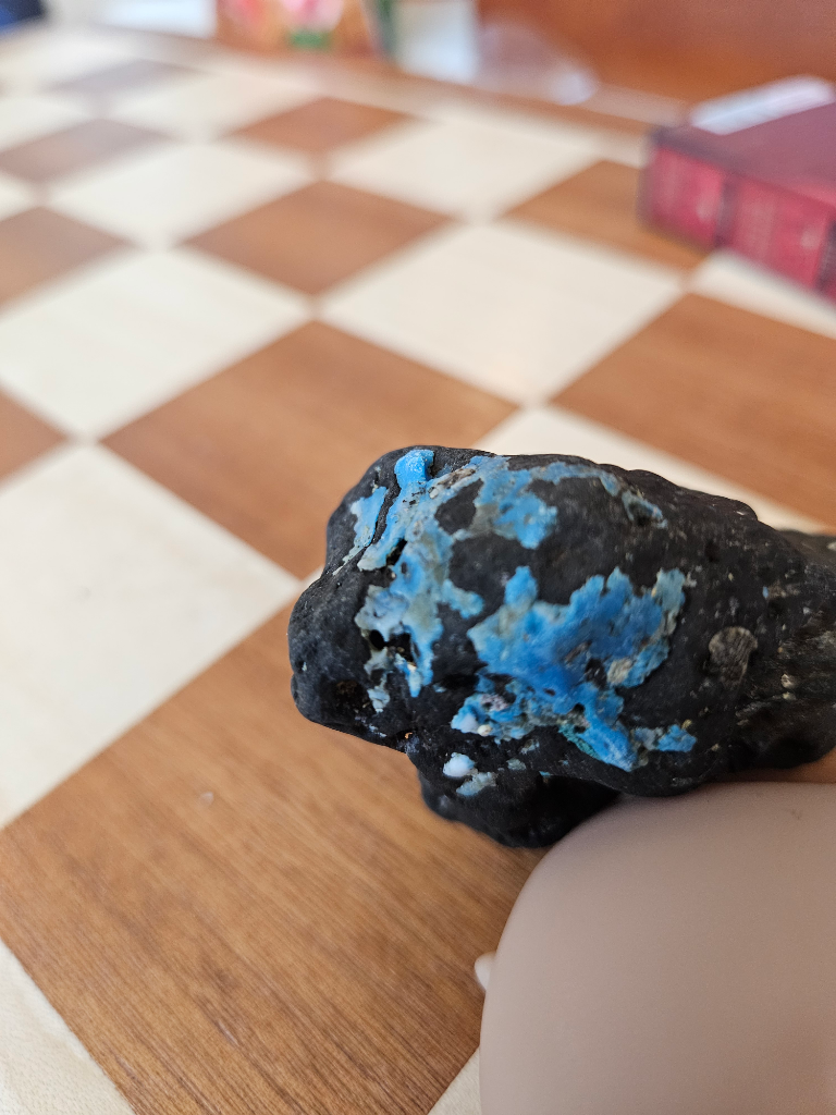 제주도 바다에서 주운 현무암인데요 파란빛이 수상해서 주워왔습니다. 파란색 보석종류인지 광물종류인지 궁금합니다. 표면에만 붙어서 긁어서 떨어지거나 하는건 아니라 안쪽까지 깊게 박혀있는 것 같습니다. 그리고 혹시 보석이라면 깨봐도 되는 궁금합니다.