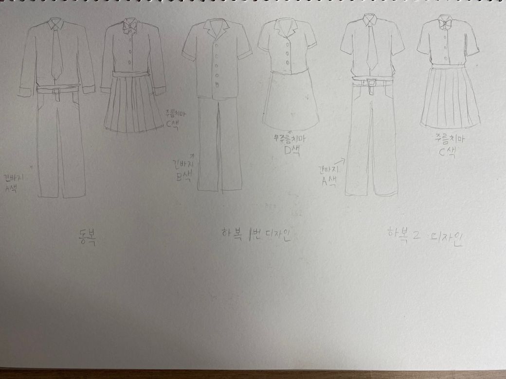 1번 사진에 동복과 하복 2번 디자인 조합처럼, 2번 사진의 스즈메의 교복인 일본교복처럼, 긴팔셔츠와 반팔셔츠 칼라, 색상, 디자인을, 하의는 4계절용으로 디자인과 색상, 치마의 형태를 통일해야합니다. 긴팔셔츠, 반팔셔츠, 자켓은 긴기장으로 성별공통으로 통일해야합니다. 예를 들면, 정장형은 정장형대로, 한복은 한복대로, 세일러복은 세일러복대로 입니다. 그래야, 동복과 하복의 통일성이 있고, 불편함, 섞어입는 현상이 줄어들고, 여학생일 경우 긴기장 셔츠에 바지, 치마 상관없이 편해지고, 자유롭게 입을 수 있습니다. 여학생의 짧은 기장인 자켓과 셔츠는 유치원용/학교용보다 놀이공원, 지역탐방, 여행, 놀러갈 때 패션으로 입는 교복룩이 낫습니다.