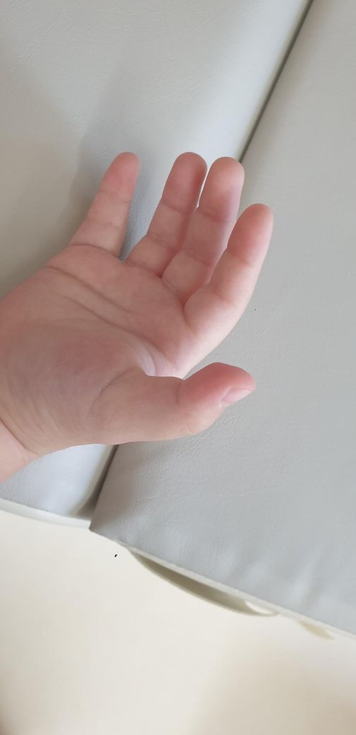 21개월 아기구요 일주일 전쯤에 오른손 엄지 손가락이 갑자기 안펴져서요 주먹 쥐거나 검지 엄지로 물건 집는거는 되는데 완전히 펴는게 안돼요
