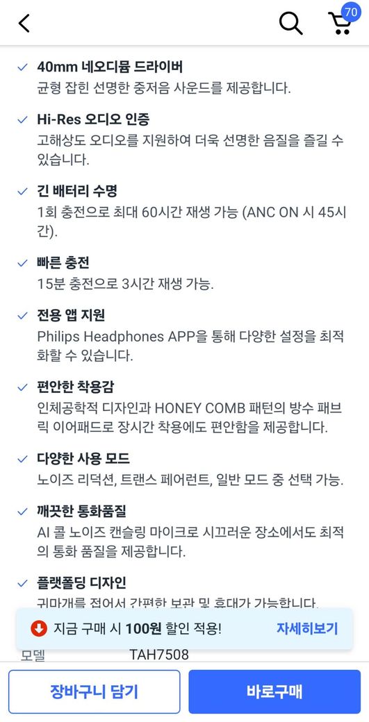 필립스 TAH7508 VS WH-CH520