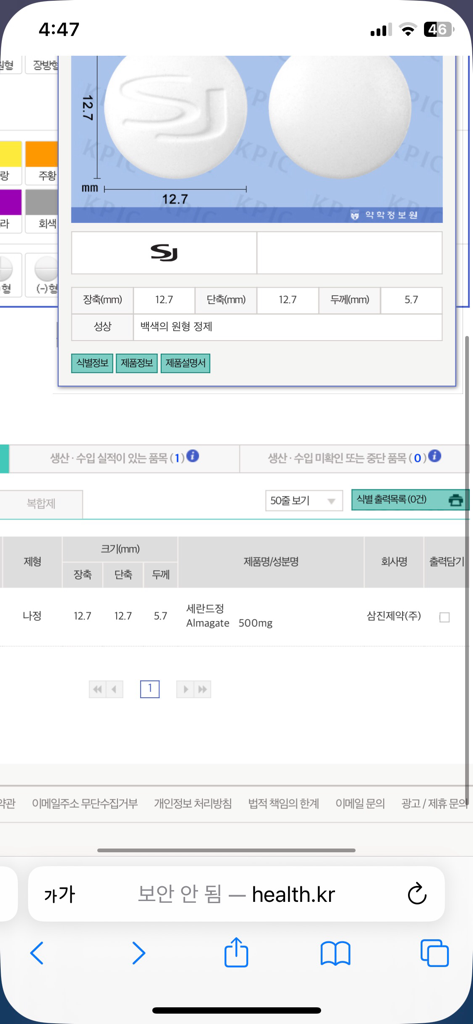 맨 밑에 흰색약 이름은 안보이지만 almagate 성분의 약도 중단하세요 . 설사가 있으면 굳이 중단하실 필요 없습니다.