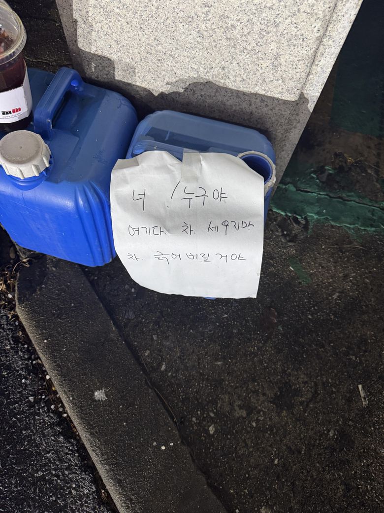 - 월주차를 끊고 사용중인데 제가 주차하는 자리에 이렇게 협박글을 받았습니다.시간은 금요일 오후 1시에서 토요일 오전 9시 사이에 작성한거 같습니다. 신고 가능할까요?