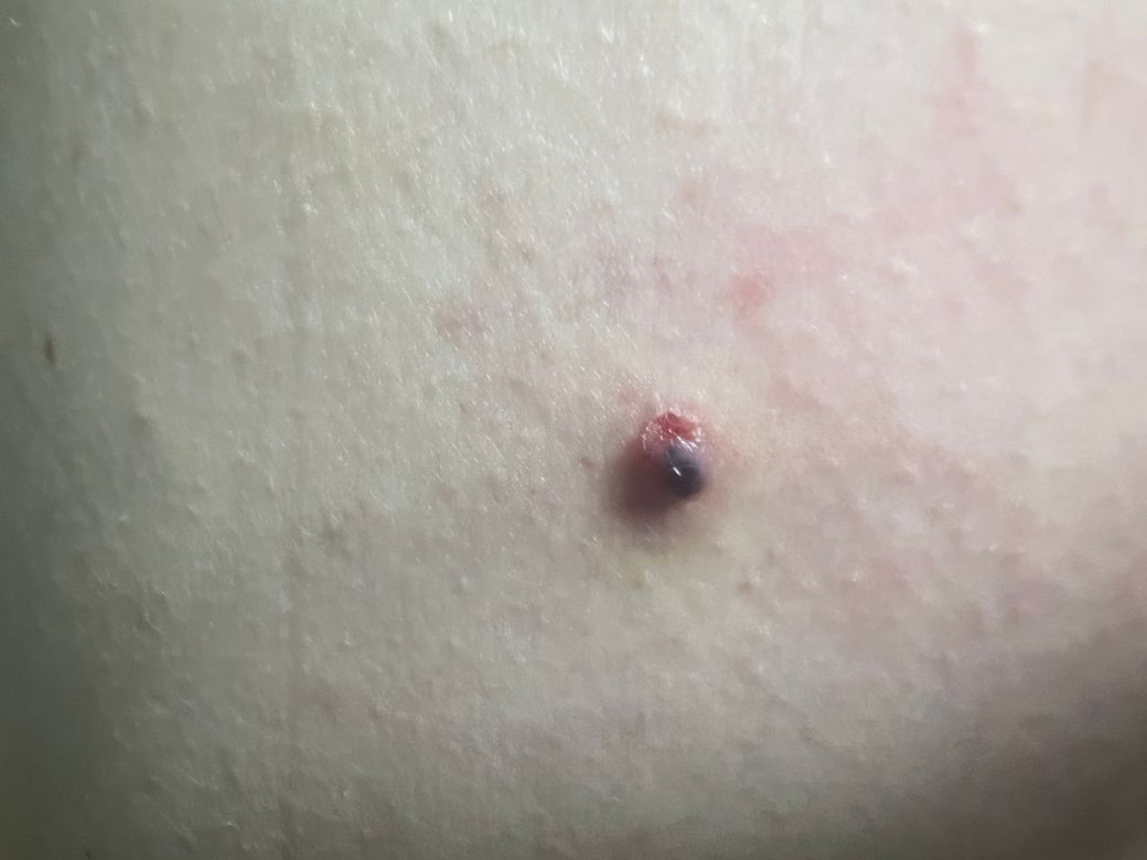 흰티를 입고 벗었는데 피가 묻어있길래 만져보니까 따끔거리고 몽우리처럼 느껴졌어요 짜니까 피가 나왔습니다. 그리고 툭 튀어나와있어요