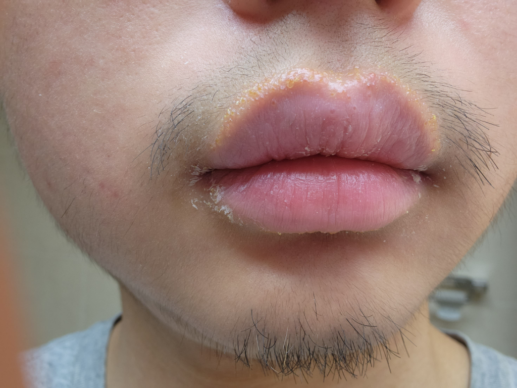 비판텐 바르고나서 이렇게 되었습니다 병원을 가야할까요 아니면 무보습으로 버티면 가라앉을까요 입술 라인따라서 수포가 너무 많이생기네요